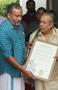 പത്തനംതിട്ട: ഉപ്പായി മാപ്പിള എന്ന കഥാപാത്രത്തെ വരകളില് സൃഷ്ടിച്ച ജോര്ജ് കു മ്പനാടിന് കേരള കാര്ട്ടൂണ് അക്കാദമിയുടെ വിശിഷ്ടാംഗത്വം സമര്പ്പിച്ചു. കുമ്പ നാ ട്ടെ അദ്ദേഹത്തിന്റെ വസതിയില് ചേര്ന്ന ലളിതമായ ചടങ്ങില് മന്ത്രി പി പ്രസാ ദ് വിശിഷ്ടാംഗത്വ ഫലകം കൈമാറി. പത്തനംതിട്ട പ്രസ് ക്ലബ്ബിന്റെ സഹകരണ ത്തോ ടെ യായിരുന്നു പരിപാടി.