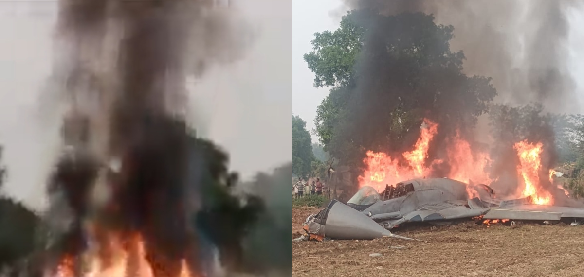 തകർന്നുവീണതിന് പിന്നാലെ തീപിടിച്ച വിമാനം കത്തിയമരുകയായിരുന്നു. വിവരമറിഞ്ഞെത്തിയ നാട്ടുക്കാർ പൊലീസിനെയും അഗ്നിരക്ഷാ സേനയെയും വിവരമറിയിക്കുകയായിരുന്നു. അപകട സൂചന ലഭിച്ചതിനെ തുടർന്ന് പൈലറ്റുമാർ സുരക്ഷിതമായി വിമാനത്തിൽ നിന്ന് പാരച്യൂട്ട് വഴി രക്ഷപ്പെടുകയായിരുന്നു. സാങ്കേതിക തകരാറാണ് അപകടത്തിൻ്റെ കാരണമെന്നാണ് പ്രാഥമിക വിവരം.