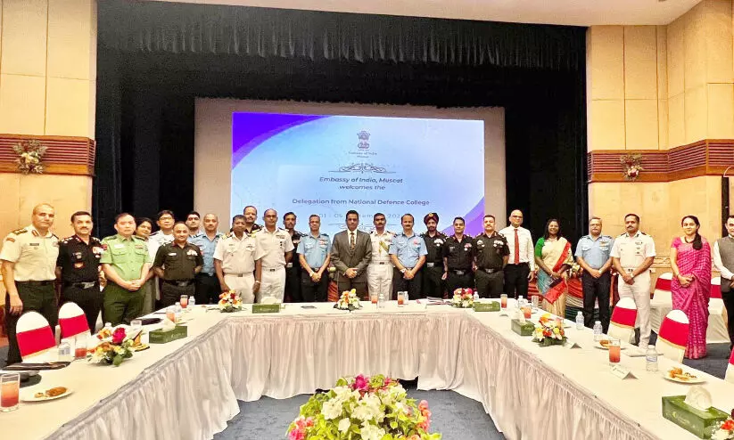 മസ്കത്ത്: ഇന്ത്യയിൽനിന്നുള്ള നാഷണൽ ഡിഫൻസ് കോളജ് പ്രതിനിധി സംഘം ഒമാൻ സന്ദർശനത്തിൽ. മസ്കത്ത് ഇന്ത്യൻ എംബസിയിൽ പ്രതിനിധി സംഘത്തിന് അംബാസഡർ അമിത് നാരംഗിന്റെ നേതൃത്വത്തിൽ ഊഷ്മള സ്വീകരണം നൽകി. എയർ വൈസ് മാർഷൽ മനീഷ് കുമാർ ഗുപ്തയുടെ നേതൃത്വത്തിലാണ് സംഘം ഒമാനിലെത്തിയത്.