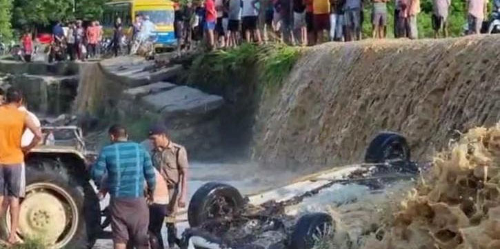 ധേല നദിക്ക് കുറുകേയുള്ള പാലത്തിലൂടെ വാഹനം പോകുമ്പോഴാണ് പുഴയിലെ വെള്ളം ഉയര്ന്ന് അപ കടം ഉണ്ടായത്. വാഹനത്തില് ഉണ്ടായിരുന്ന ഒരു പെണ്കുട്ടിയെ മാത്രമാണ് രക്ഷിക്കാനായത്. അതേ സമയം ഉത്തരാഖണ്ഡില് ചൊവ്വാഴ്ച വരെ ഇടി മിന്നലൊടു കൂടിയ വ്യാപകമായ മഴക്ക് സാധ്യതയെന്ന് കാ ലാവസ്ഥാ നിരീക്ഷണ കേന്ദ്രം അറിയിച്ചു.