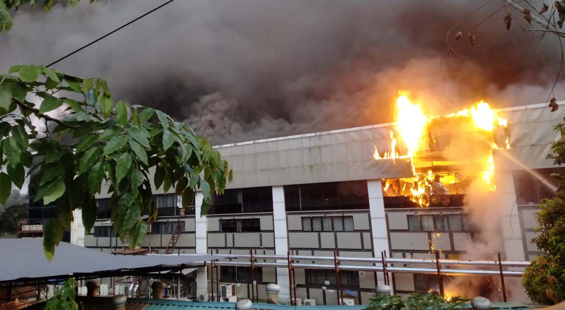 അവധി ദിവസമായതിനാല്‍ വിരലില്‍ എണ്ണാവുന്ന ജീവനക്കാര്‍ മാത്രമാണ് ഇന്ന ലെ ഇവിടെ ഉണ്ടായിരു ന്നത്. പൂര്‍ണമായും ഗ്ലാസ് പാനലുകള്‍ ഉപയോഗിച്ച് നിര്‍ മിച്ച ബഹുനില ക്കെട്ടിടത്തിന്റെ മൂന്നാം നിലയി ല്‍ നിന്നാണ് തീ ആദ്യം പടര്‍ന്നത്. പൂര്‍ണമായും ശീതികരിച്ച കെട്ടിടത്തില്‍ എസി പാനലുകള്‍ക്കുള്ളില്‍ നിറച്ചിരി ക്കുന്ന ഗ്യാസ് തീപിടിത്തത്തിന്റെ വേഗത കൂട്ടി.