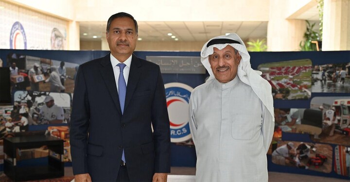 കുവൈത്ത് സിറ്റി : കുവൈത്ത് റെഡ് ക്രസന്റ് സൊസൈറ്റിയുടെ (കെആര്സിഎസ്) ചെയര്മാന് അംബാസഡര് ഖാലിദ് മുഹമ്മദ് സുലൈമാന് അല് മുഖമിസുമായി ഇന്ത്യന് സ്ഥാനപതി ആദര്ശ് സൈ്വക കൂടിക്കാഴ്ച നടത്തി.വിവിധ രാജ്യങ്ങള്ക്ക് കെആര്സിഎസ് നല്കുന്ന മാനുഷിക സഹായങ്ങളെ ആദര്ശ് സൈ്വക അഭിനന്ദിച്ചു. എംബസി ഡെപ്യൂട്ടി ചീഫ് ഓഫ് മിഷന് സഞ്ജയ് കെ. മുലുക്കയും സംബന്ധിച്ചിരുന്നു.