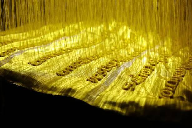 പാരമ്പര്യരീതിയിൽ നെയ്തെടുത്ത ആറു കൈത്തറി കസവ് മുണ്ടുകൾ ഉപയോഗിച്ചാണ് ഇൻസ്റ്റലേഷൻ തയ്യാറാക്കിയത്. അതിന്മേൽ അക്ഷരങ്ങളും വാക്കുകളും തുന്നിയും പ്രിന്റ് ചെയ്തും ചേർത്തു. കൈത്തറിയുടെ ഇഴയടുപ്പം പോലെ വ്യക്തികൾ തമ്മിലുള്ള വൈകാരികതയുടെ അടുപ്പവും വൈകാരികതയും ഇതുവഴി ധ്വനിപ്പിക്കുന്നു. സ്വാതന്ത്ര്യം, വിവേകം, വിശ്വാസം, പെൺലൈംഗികത തുടങ്ങിയ സമകാലികപ്രസക്തിയുള്ള വിഷയങ്ങളും കസവ് സൃഷ്ടിയിൽ വിഷയങ്ങളാകുന്നുണ്ട്. ചുവന്ന നിറത്തിൽ ഒരുക്കിയ വാക്കുകൾ വ്യാകരണത്തിനും സെമസ്റ്റിക് ഘടനകൾക്കും അപ്പുറമായാണ് വിന്യസിക്കുന്നത്. ചോരയുടെ കരുത്തും ചുവപ്പിലൂടെ ധ്വനിപ്പിക്കുന്നു.