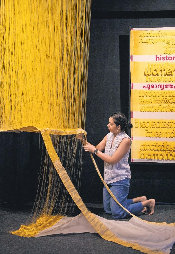 ഫെമിനിസം, ലിംഗവിവേചനം തുടങ്ങിയ വിഷയങ്ങളും ഇഴപിരിച്ചു ചേർത്തതാണ് സൃഷ്ടി. ഇഴയടുപ്പമുള്ള കൈത്തറി വസ്ത്രം നെയ്തെടുത്ത് അതിന്മേൽ അക്ഷരങ്ങളും വാക്കുകളും തുന്നിയും പ്രിന്റ് ചെയ്തുമാണ് ഇൻസ്റ്റലേഷൻ തയ്യാറാക്കിയത്.