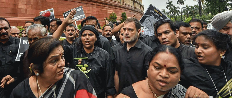 രാഹുല് ഗാന്ധിക്കൊപ്പം ശശി തരൂര്, ഹൈബി ഈഡന് എന്നിവരടക്കമുള്ള എംപിമാരെയും നേതാ ക്കളെയും പൊലീസ് അറസ്റ്റ് ചെയതു. കറുപ്പ് വസ്ത്രം ധരിച്ചായിരുന്നു പ്രതിഷേധം നടത്തിയത്. പ്രതി ഷേധത്തെ തുടര്ന്ന് രാജ്യസഭാ നടപടികള് ഇന്നത്തേക്ക് നിര്ത്തിവെച്ചു.