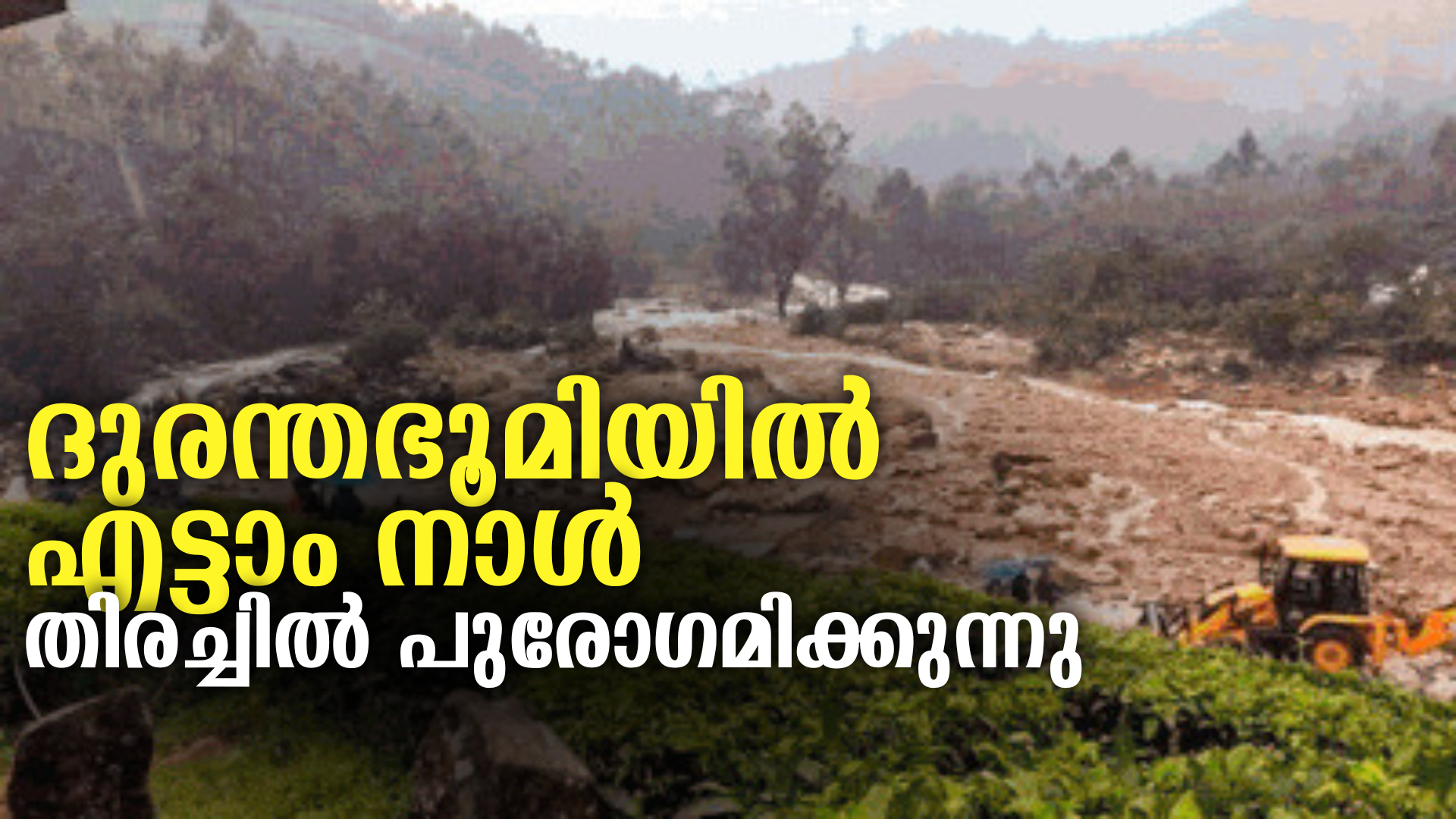 ചൂരൽമലയിലും മുണ്ടക്കൈയിലും ഉരുൾപൊട്ടലുണ്ടായിട്ട് ഇന്ന് എട്ട് ദിവസം തികയുന്നു. കേരളം കണ്ട ഏറ്റവും വലിയ ദുരന്തത്തിൽ ദിനംപ്രതി മരണസംഖ്യ ഉയരുമ്പോൾ രാജ്യം മുഴുവൻ നടുങ്ങുകയാണ്. ഒരാഴ്ച കഴിഞ്ഞിട്ടും തിരച്ചിൽ തുടരുകയാണ്.