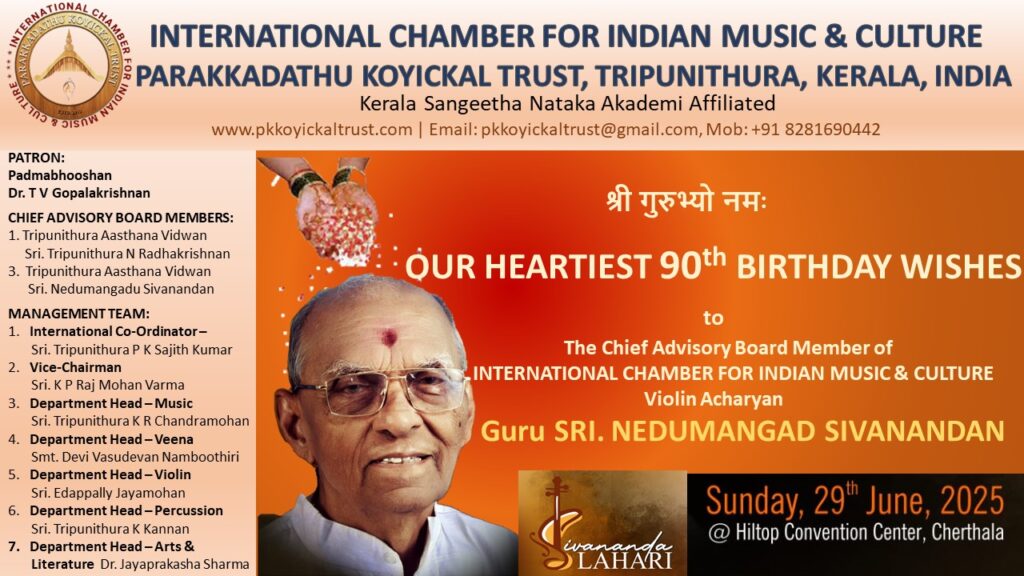 നവതിയിലേക്ക് കടക്കുന്ന ഗുരുവിന്റെ സംഗീതസേവനത്തിനും ഗുരുശിഷ്യബന്ധത്തിനും സംഗീതലോകം നൽകുന്ന അഗാധമായ ആദരവാണ് ഈ പരിപാടിയിലൂടെ പ്രതിഫലിക്കുന്നത്.