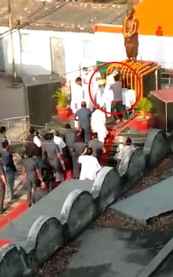 വേദിയില് കയറി പുഷ്പാഞ്ജലി അര്പ്പിക്കുന്നതിനിടെ, പിന്നില് നിന്ന് അതിവേഗം നടന്നുവന്ന അക്രമി പെട്ടെന്ന് തന്നെ മുഖ്യമന്ത്രിയെ ആക്രമിക്കുകയായിരുന്നു. ഉടനെ തന്നെ സുരക്ഷാ ഉദ്യോഗസ്ഥര് അക്ര മിയെ പിടികൂടി. സുരക്ഷാ ഉദ്യോഗസ്ഥര് ചുറ്റിലും നില്ക്കുമ്പോഴായിരുന്നു സുരക്ഷാ വീഴ്ച സംഭവിച്ചത്. ഇതിന്റെ ദൃശ്യങ്ങള് പുറത്തുവന്നിട്ടുണ്ട്.