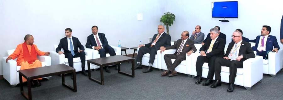 ആഗോള നിക്ഷേപ സംഗമത്തില് വെച്ച് യുഎഇ പ്രതിനിധികളുമായി മുഖ്യമന്ത്രി യോഗി ആദി ത്യനാഥ് കൂടിക്കാഴ്ച്ച നടത്തി. യു.എ.ഇയും ഉത്തര് പ്രദേശും തമ്മിലുള്ള വാണിജ്യ വ്യവസായ രംഗത്തെ നിക്ഷേപവുമായി ബന്ധപ്പെട്ട കാര്യങ്ങള് യോഗത്തില് ചര്ച്ച ചെയ്തു.