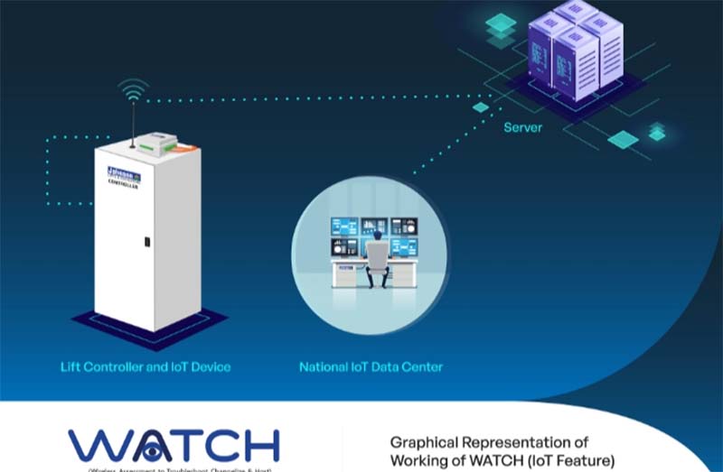 ലിഫ്റ്റിന്റെ പ്രവര്ത്തനത്തെ മനസ്സിലാക്കുകയും നിരീക്ഷിക്കുകയും മുന്നറിയിപ്പ് നല്കുകയും ലിഫ്റ്റി ലെ ഐഒടി ഉപകരണം വഴി ലിഫ്റ്റുകളെ ഡാറ്റാ സെന്ററുമായി ബന്ധിപ്പിക്കുന്ന വയര്ലെസ് സോഫ്റ്റ്വെ യറാണ് വാച്ച് (”WATCH’ – Wireless Assessment to Troubleshoot Channelize & Host). ഈ പുതിയ സാങ്കേതി കവിദ്യ ലിഫ്റ്റുകളുടെ തത്സമയ നിരീക്ഷണം സാധ്യമാക്കുകയും ഉപഭോക്താക്കള്ക്ക് ഉടനടി ആവശ്യമായ സഹായം ലഭിക്കുന്നതിനും ഉയര്ന്ന വൈദഗ്ധ്യമുള്ള സാങ്കേതിക വിദഗ്ധര്ക്ക് ആവശ്യമായ മുന്നറിയിപ്പ് നല്കുന്നതിനും നൂതന ഇന്റലിജന്റ് സോഫ്റ്റ്വെയറാണ് ഉള്പ്പെടുത്തിയിരിക്കുന്നത്. ഇതിലൂടെ ലിഫ്റ്റി ന്റെ കാര്യക്ഷമമായ പ്രവത്തനത്തെ നിലനി ര്ത്തി അതുവഴി ലിഫ്റ്റിന്റെ വിശ്വാസ്യത മെച്ചപ്പെടുത്താനും കഴിയും.
