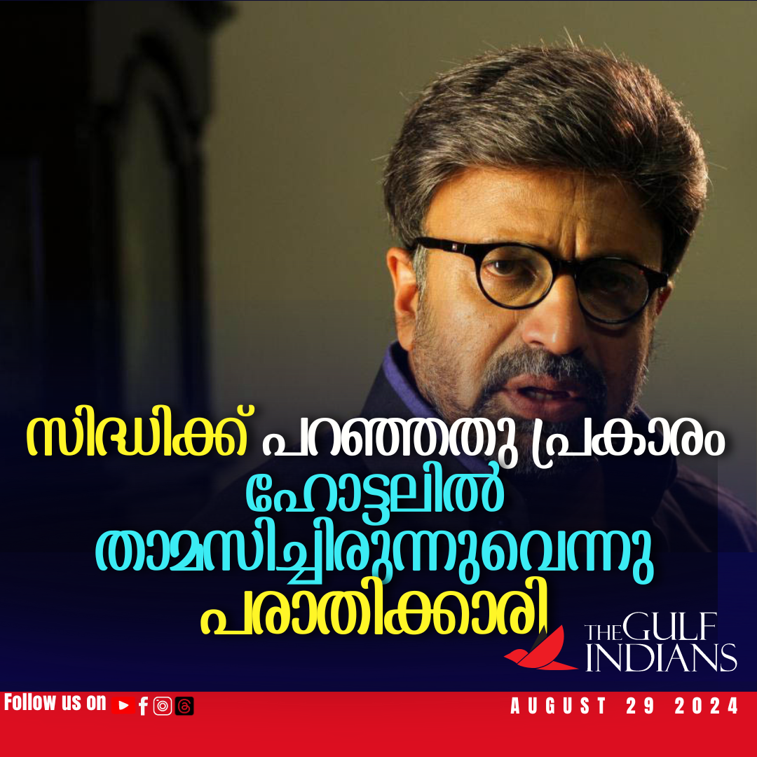 2016 ജനുവരി 28 ന് സിദിഖ് മാസ്ക്കറ്റ് ഹോട്ടലിൽ താമസിച്ചത്. അന്നേദിവസമാണ് സിനിമയുടെ പ്രിവ്യൂ നടന്നത്. പ്രിവ്യൂ നടന്ന ദിവസം ഹോട്ടലിൽ വിളിച്ച് വരുത്തി ബലാത്സംഗം ചെയ്തുവെന്നായിരുന്നു സിദ്ദിഖിനെതിരായ പരാതി.