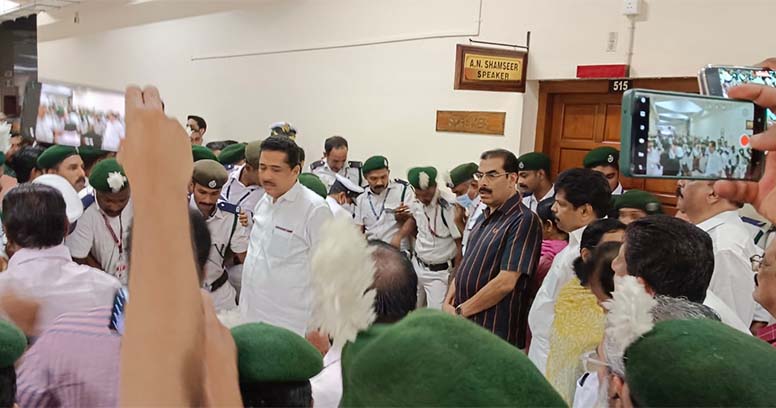 സ്പീക്കര് നീതി പാലിക്കണമെന്ന ബാനര് ഉയര്ത്തിയായിരുന്നു പ്രതിപക്ഷം ഓഫീസ് ഉപരോധിച്ചത്. സംഘ ര്ഷത്തിനിടെ ഭരണപക്ഷ എംഎല്എമാരുടെ സംരക്ഷണയില് സ്പീക്കര് ഓഫീസില് പ്രവേശിച്ചു. തിരുവ ഞ്ചൂര് രാധാകൃഷ്ണനെ വാച്ച് ആന്ഡ് വാര്ഡ് മര്ദിച്ചതായി പ്രതിപക്ഷം ആരോപിച്ചു. ഉന്തിനും തള്ളിനുമി ടയില് ചാലക്കുടി എംഎല്എ സനീഷ് കുമാര് ജോസഫ് കുഴഞ്ഞുവീണു.
