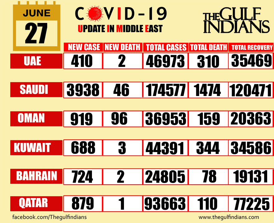 ഗള്‍ഫ് മേഖലയിലെ പ്രധാന രാജ്യങ്ങളിലെ കോവിഡ്-19 വിവരങ്ങള്‍