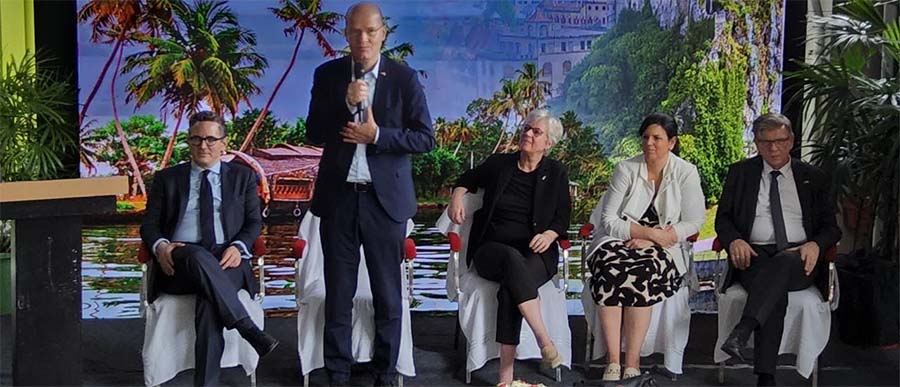 തിരുവനന്തപുരത്തെ ഗോയ്ഥേ സെന്ററില് നടന്ന ചടങ്ങില് നോര്ക്ക അധികൃതര്, ജര്മ്മന് ഭാഷാപരിശീ ലനത്തില് ഏര്പ്പെട്ടിരിക്കുന്ന നഴ്സുമാര്, ഭാഷാ അദ്ധ്യാപകര് എ ന്നിവരുമായി അവര് ആശയവിനിമയം നടത്തി.