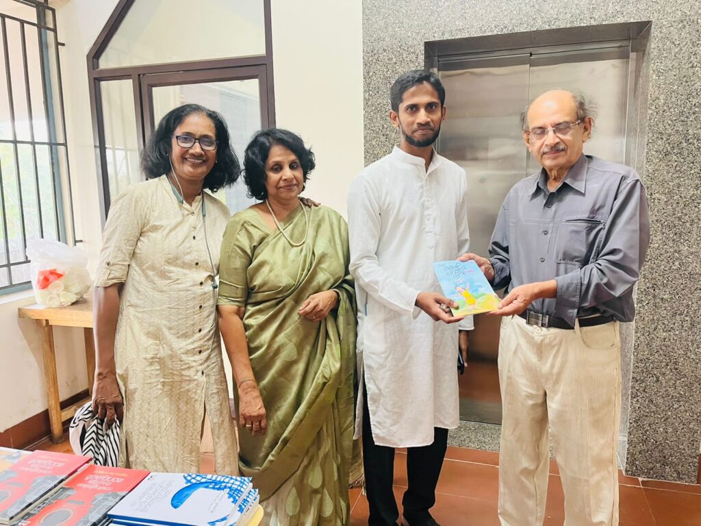 “കുട്ടിയും വെള്ളരി പ്രവും “എഴുത്തുകാരൻ ഖുഡിസി ബുക്ക് പ്ലസ് ഉടമ ഷാഫിക്ക് നൽകി പ്രകാശനം ചെയ്യുന്നു.എൽസ,കോഴിക്കോട് കോർപറേഷൻ കൗൺസിലർ ഡോ :അൽഫോൻസ് മാത്യു എന്നിവർ സമീപം.